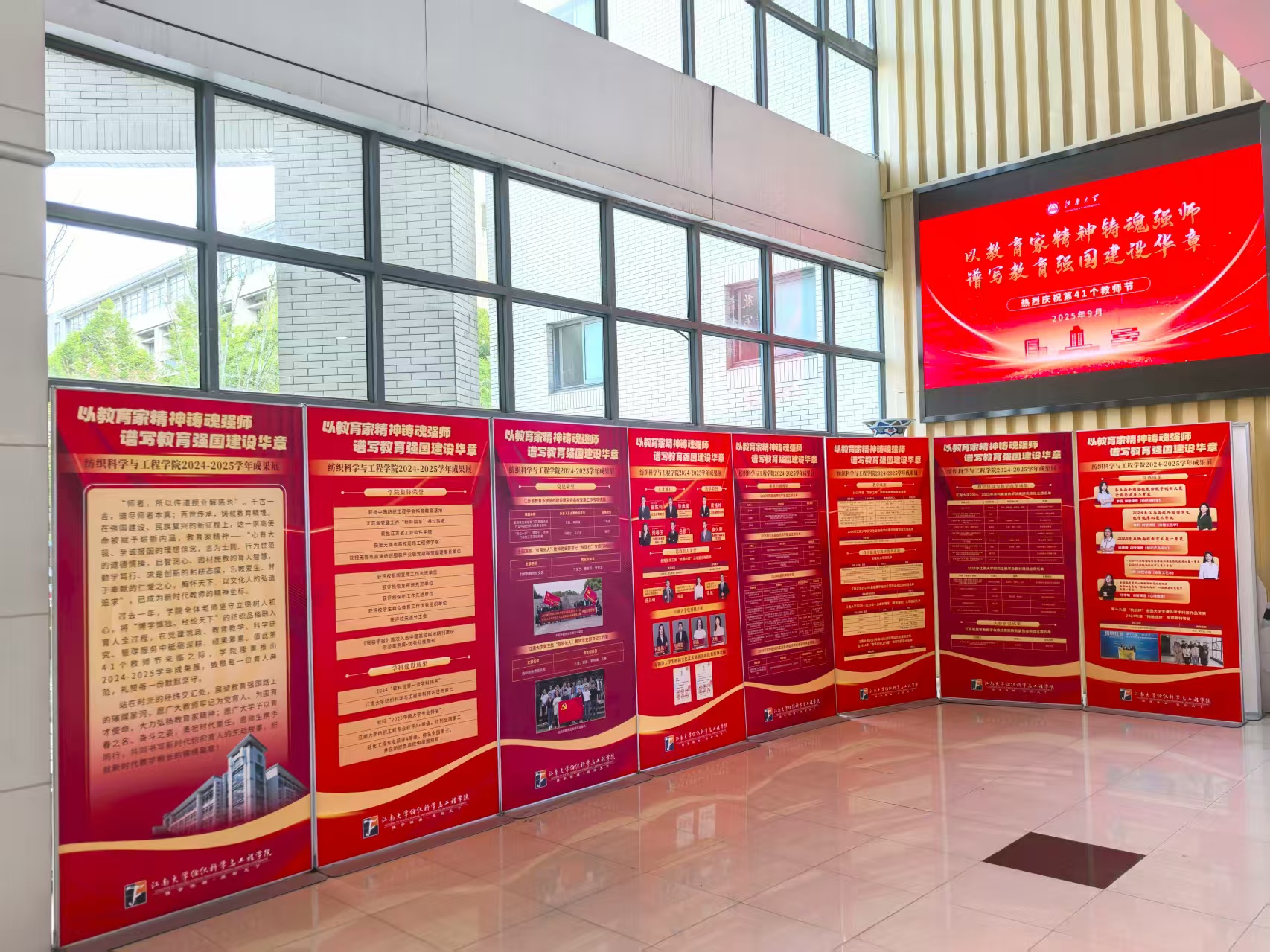 过去一年,学院全体老师坚守立德树人初心,将“博学慎独、经纶天下”的纺织品格融入育人全过程,在党建思政、教育教学、科学研究、管理服务中砥砺深耕、硕果累累。值教师节之际,学院在大厅隆重推出2024-2025学年成果展,致敬每一位育人典范,礼赞每一份默默坚守。