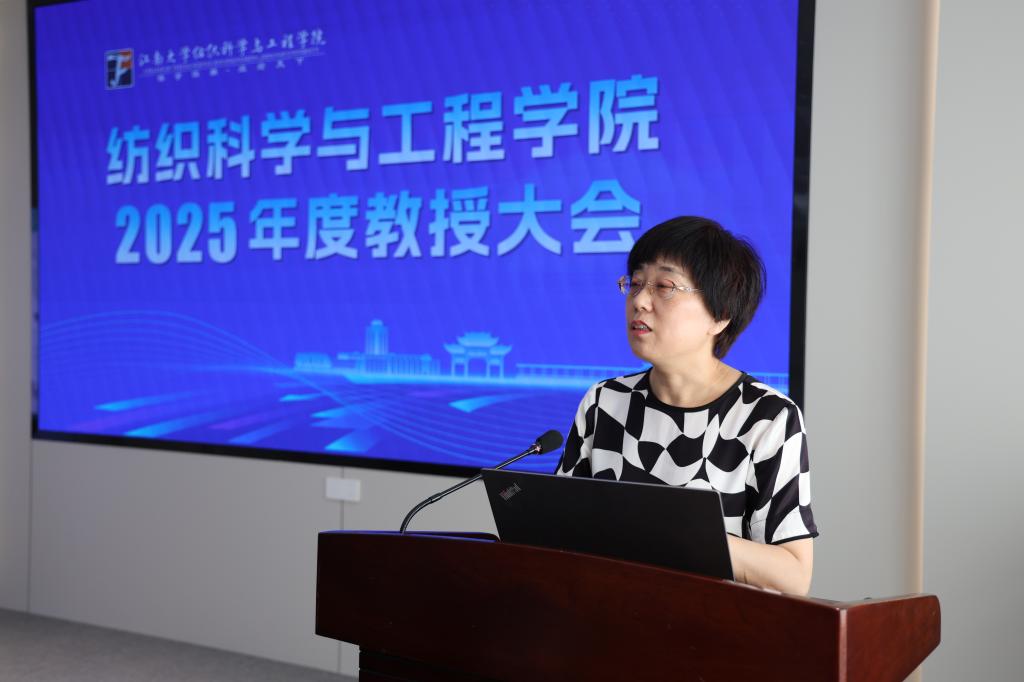 会议最后,张菁燕作总结讲话。她以“经天纬地”“千丝万缕”“万物可织”三个纺织关键词作了工作总结与部署。她指出,“经天纬地” 彰显纺织学科的战略价值,学院需紧扣时代脉搏,提高站位,在国家教育强国、制造强国战略中找准方向;“千丝万缕” 体现学院发展的协同性,需加强领导班子、教授团队、师生之间的联动,形成“上下一心、同向发力”的良好局面;“万物可织” 则凸显纺织学科的创新活力,要推动学科交叉融合,在“新纺织”领域开辟新赛道。