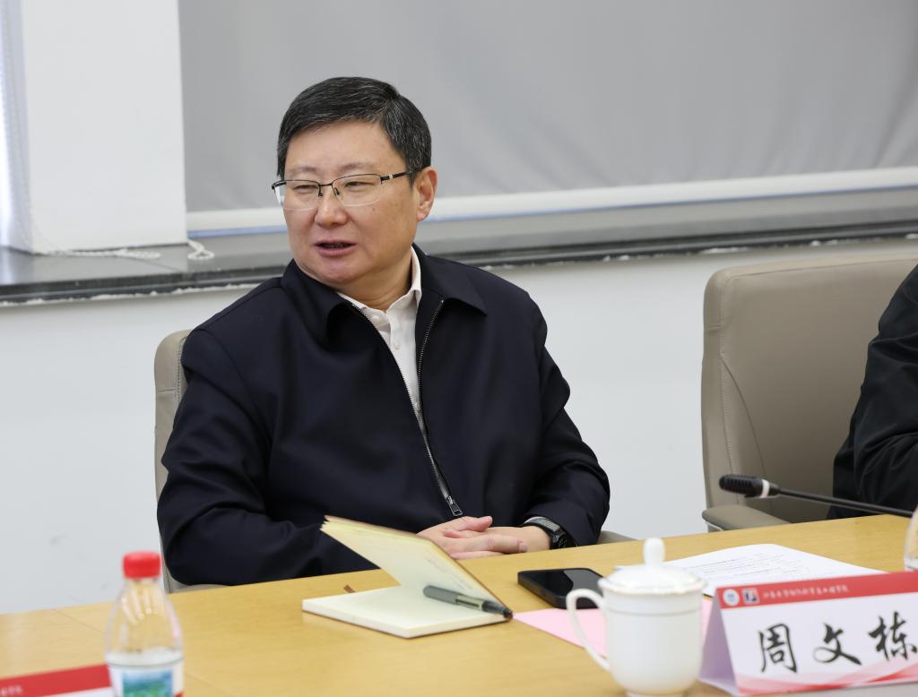 调研期间,周文栋副市长一行实地考察了学院相关实验室与科研平台,参观了针织技术教育部工程研究中心,详细了解了学院在先进纺织技术、绿色染整、生物基材料、智能纺织品等前沿领域的最新科研进展与技术突破,并听取了学院关于学科建设、人才培养及产学研合作情况的汇报。座谈会上,市科技局、工业和信息化局、市场监管局、商务局等相关负责人就如何更加深入地开展校地共建进行了研讨交流。