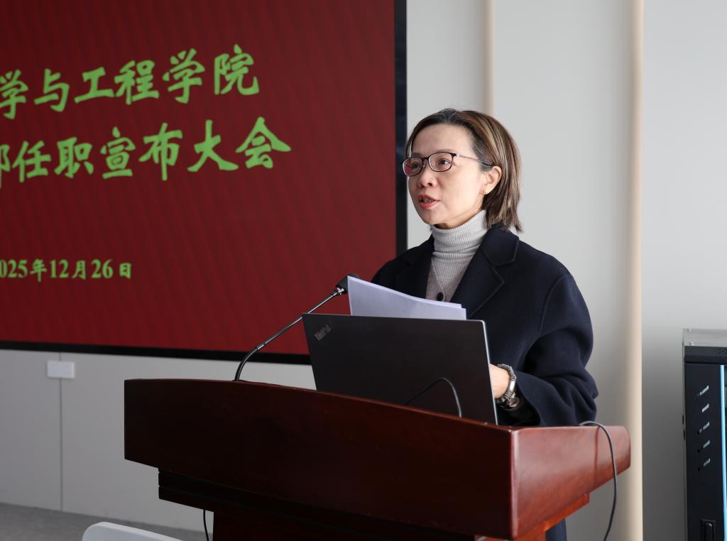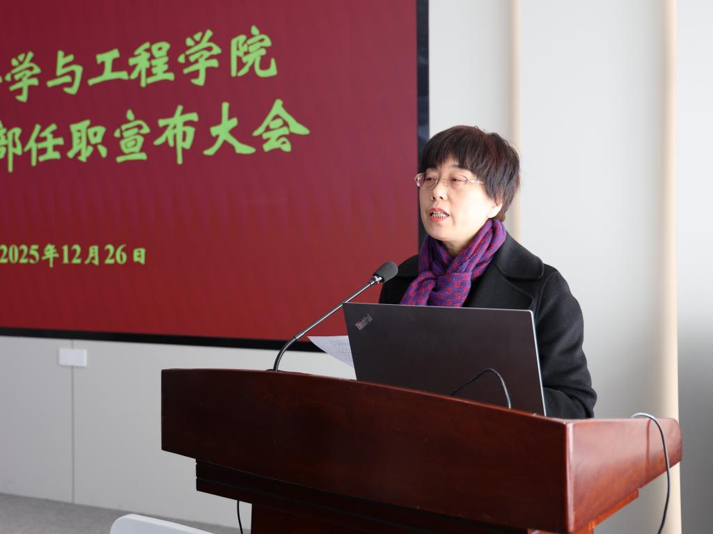 张影陆发表讲话。她充分肯定了学院近年来坚持党的全面领导,落实立德树人根本任务,紧密对接国家重大战略和世界科技前沿,在人才培养、学科建设、科研创新等各项事业中取得的显著成效。她对付少海同志近10年来为学院和学校事业发展作出的重要贡献表示衷心感谢,并对马丕波、王恒同志的相关情况作了简要介绍。她对学院的建设发展提出了三点要求:一是强化政治引领,推进“一融双高”建设。坚持把政治建设放在首位,确保学院各项事业始终沿着正确的政治方向行稳致远。二是勇立时代潮头,“织”就江南纺织“华章”。立足学科优势,强化有组织研究,积极打造与人工智能、生命健康等领域深度交叉的新增长点。引育并举塑造高水平师资队伍,深化教育教学改革,培养引领行业未来发展的复合型人才。三是弘扬清风正气,砥砺团结奋进作风。持之以恒推进全面从严治党,让好作风出生产力、强战斗力。抓细师生思想政治工作,主动强化管理体制机制改革,有效凝聚学院发展资源,筑牢事业发展根基。