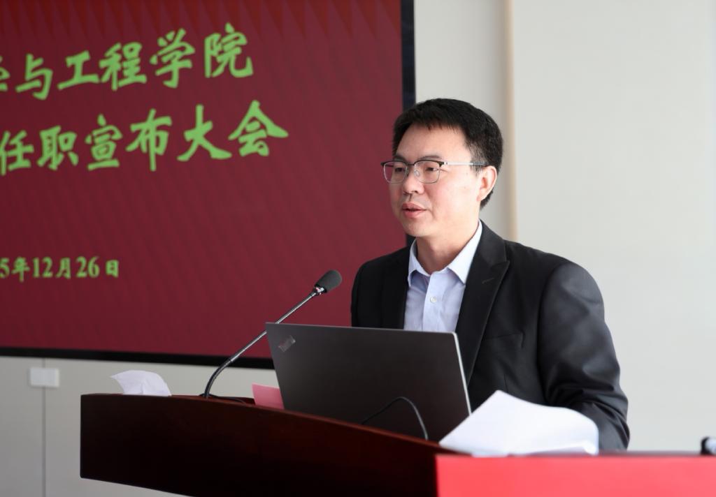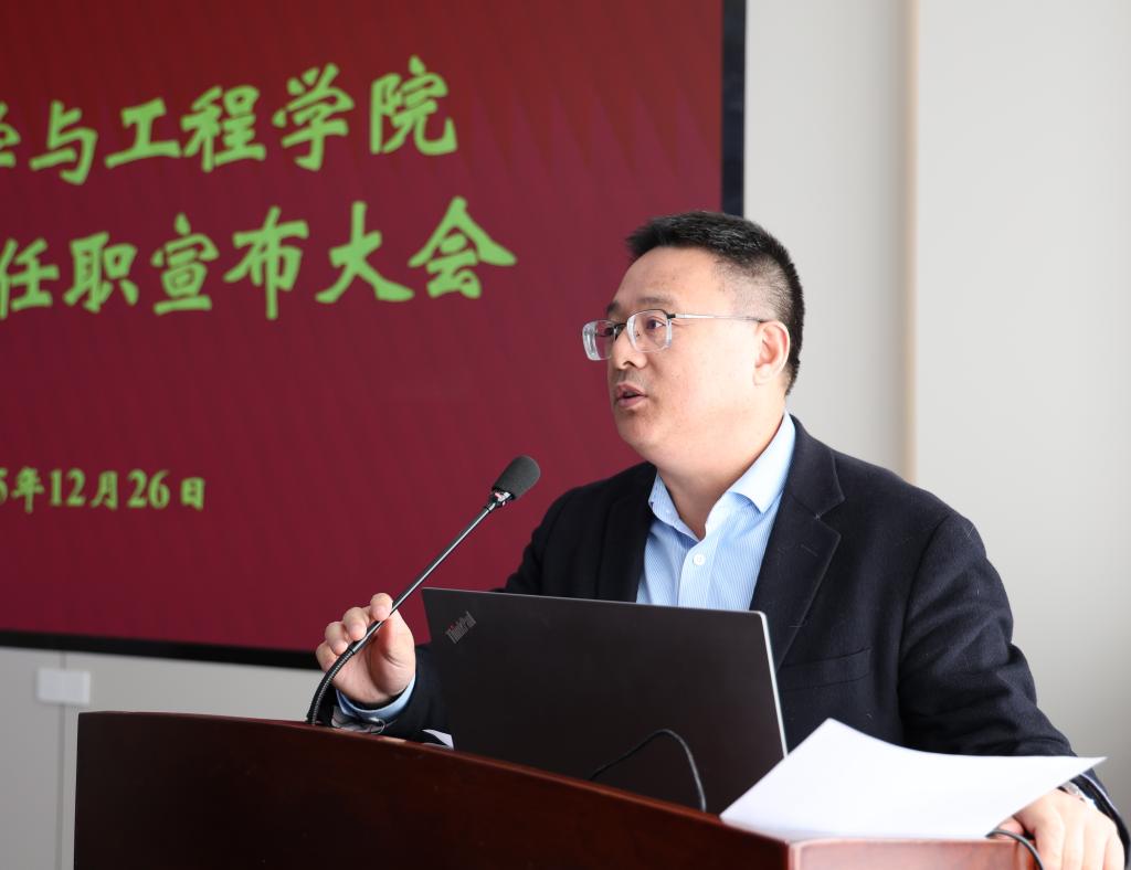 付少海发表离任感言。他对学校党委的信任和培养表示感谢。深情回顾了自己作为学院培养的第一位博士,从求学到求职,从普通教师到院长的心路历程,尤其感恩在担任院长期间,在班子成员的配合、全体教职工的支持下,共同推动学院各项事业不断向前发展所经历的难忘时光。他表示,虽转任新职,仍会持续关心支持学院建设,期盼在新一届领导班子的带领下,全体师生抢抓机遇、乘势而上,取得更大成绩。