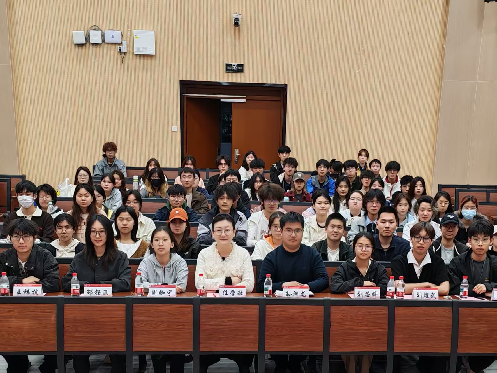 在1C109教室召开2024-2025学年学生组织中期述职评议大会。学院学工办主任兼分团委书记任学敏、辅导员孙洲龙、学生组织主席团成员及各部门成员共同出席了此次大会。