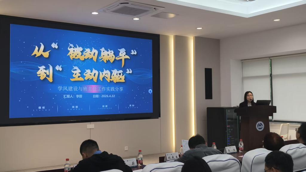 学院优秀班主任代表李蔚分享班主任工作经验。李蔚指出当前学生面临“卷不动,躺不平”的状态,缺乏明确的学习目标,需要从被动学习转向主动规划,适应AI时代对专业能力的新要求。他强调同学们要通过改进学习方法提升课堂学习效率,主动将专业知识转化为实践能力,积极参加科创活动。他认为,班级管理需定期“戳一下”学生,帮助学生调整状态,并针对不同发展阶段学生提供个性化指导,合理利用人工智能工具辅助规划。